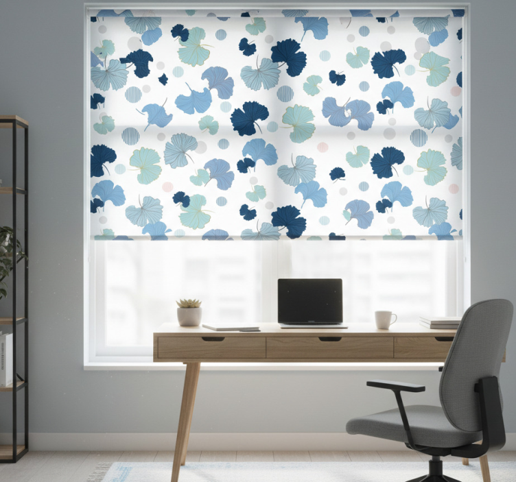 Cortina roller oficina hoja de ginkgo azul