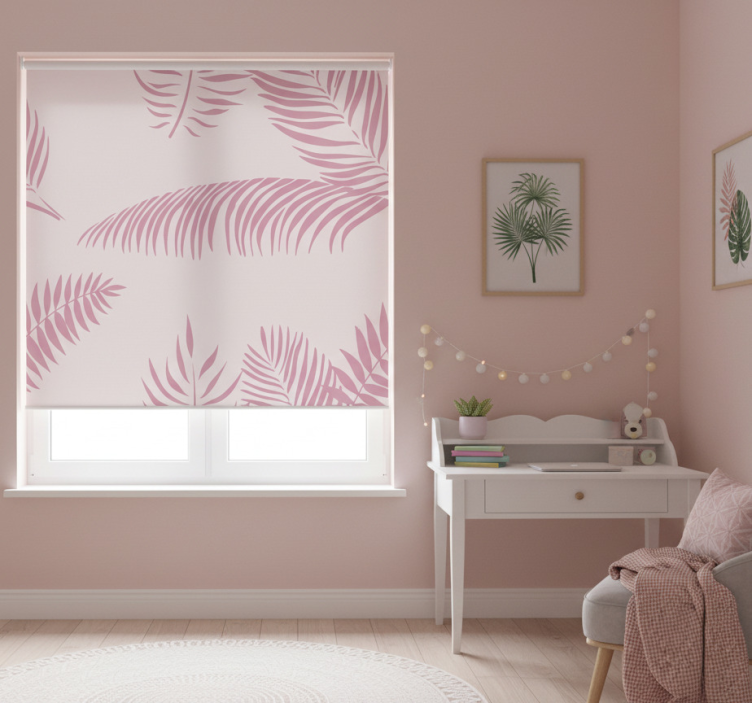 Cortina roller rosa hojas de palmera grandes
