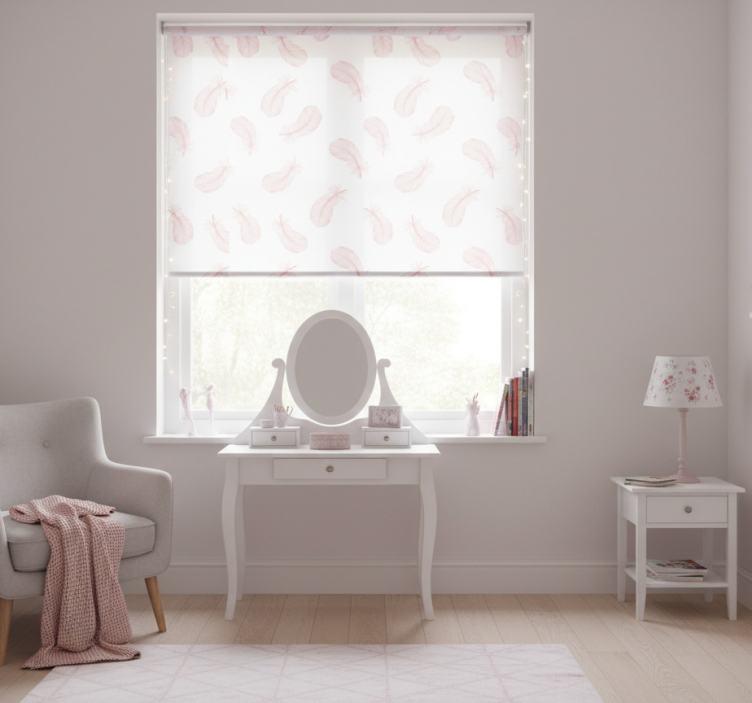 Referencia: E8165Descubre la belleza y elegancia de nuestra Cortina roller rosa patrón de plumas rosas, un accesorio decorativo que transformará cualquier habitación. Este diseño encantador presenta un delicado patrón de plumas rosas sobre un fondo suave, creando un ambiente acogedor y moderno. Ideal para dormitorios o salas de estar, su estilo fresco y contemporáneo aporta un toque de calidez y amor a tu hogar.