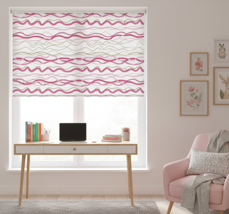 Cortina roller rosa rayas onduladas rosas