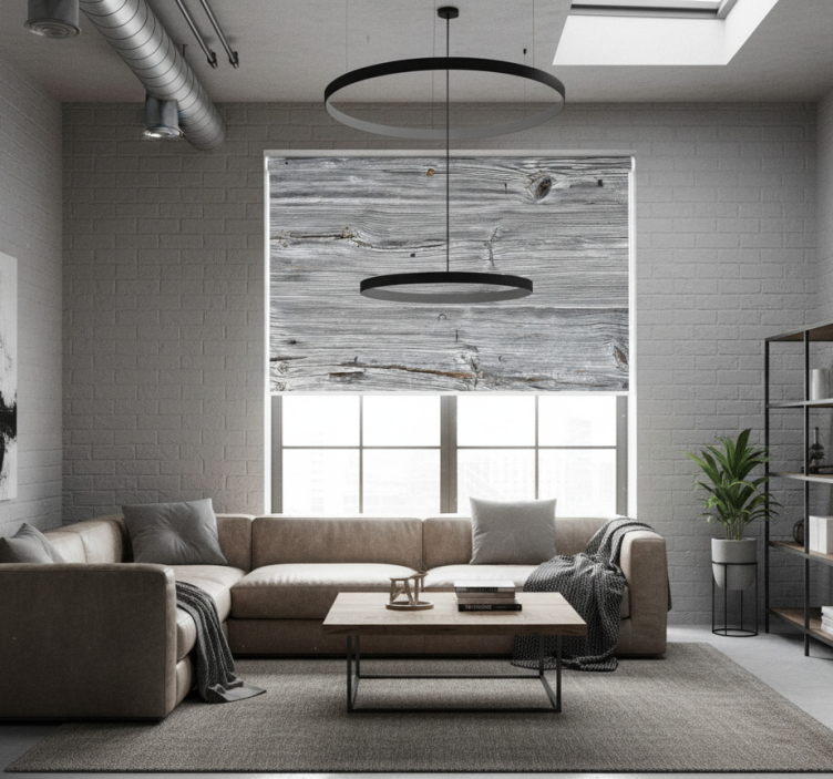 Cortina roller textura madera gris envejecida