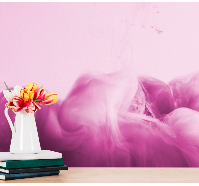 Mural abstracto flujo de humo rosa
