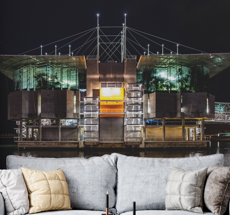 Descubre el Mural ciudad arquitectura urbana futurista, una obra maestra que transforma cualquier espacio en un vibrante paisaje urbano. Este diseño gráfico, que evoca la esencia de Lisboa, Portugal, fusiona edificios modernos con un acuario impresionante, creando una atmósfera única que invita a soñar y explorar. Con su estética contemporánea, este mural es el toque perfecto para revitalizar tus paredes y llevar la arquitectura a tu hogar.
