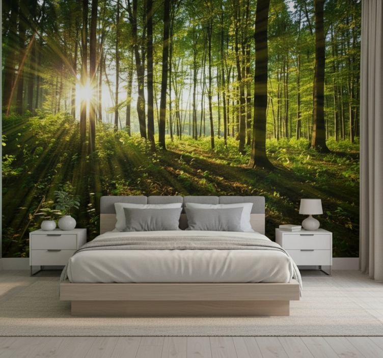 Mural de bosque bosques de sol radiante