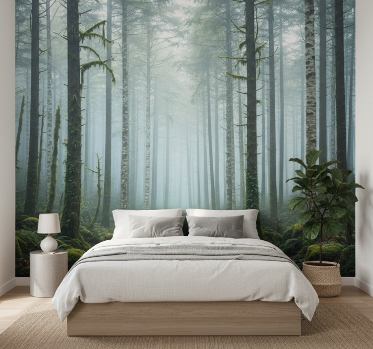 Mural de bosque bruma atmosférica