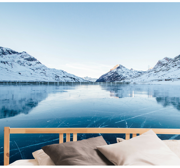 Mural de montañas picos del lago congelado