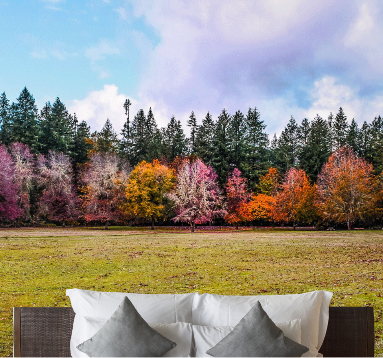 Descubre la belleza natural de un mural de naturaleza bosque colorido en otoño que transforma cualquier espacio en un paisaje vibrante y acogedor. Este diseño presenta árboles majestuosos, un bosque lleno de vida y un campo que evoca la serenidad de la estación otoñal. La fotografía captura la esencia del otoño, con colores vistosos que llenan de calidez y encanto tu hogar.