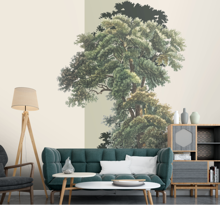 Transforma tus espacios con el Mural de naturaleza paisaje colorido de hojas, una ilustración artística que evoca la serenidad de la naturaleza. Este diseño vibrante, que presenta un árbol rodeado de follaje exuberante, se convierte en el protagonista de cualquier habitación, llenándola de vida y color. ¡Deja que la belleza del paisaje natural inunde tu hogar!