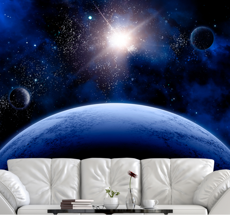 Transforma tus espacios con el Mural del espacio perspectiva orbital celestial, un diseño que evoca la majestuosidad del universo. Con planetas vibrantes, un sol radiante que emite rayos de sol y una galaxia llena de estrellas, este mural es un viaje visual a través del cosmos. La luz del sol se entrelaza con la profundidad del espacio, creando un ambiente que inspira asombro y tranquilidad.