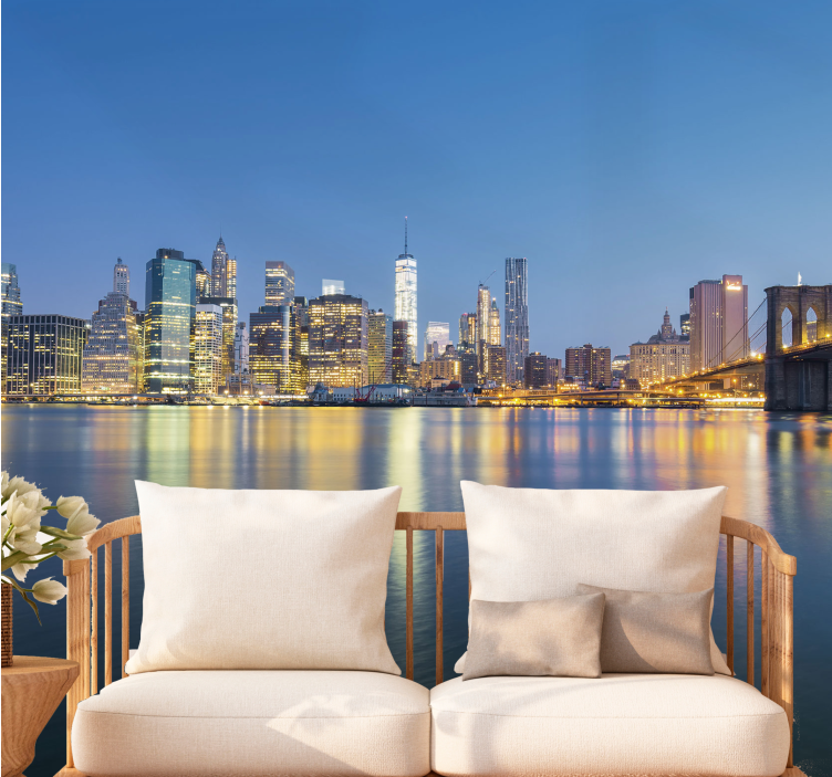 Descubre la magia de New York con nuestro impresionante mural new york puente de brooklyn y skyline urbano. Este diseño cautivador presenta un hermoso panorama de la ciudad que nunca duerme, con el icónico puente de Brooklyn en primer plano y un horizonte iluminado por las luces de la ciudad. Las reflexiones sobre el agua añaden un toque de serenidad, mientras que la vibrante ciudad cobra vida a través de este arte mural, creando un ambiente único y estimulante en cualquier espacio. ¡Perfecto para quienes desean llevar un pedazo de Nueva York a su hogar!