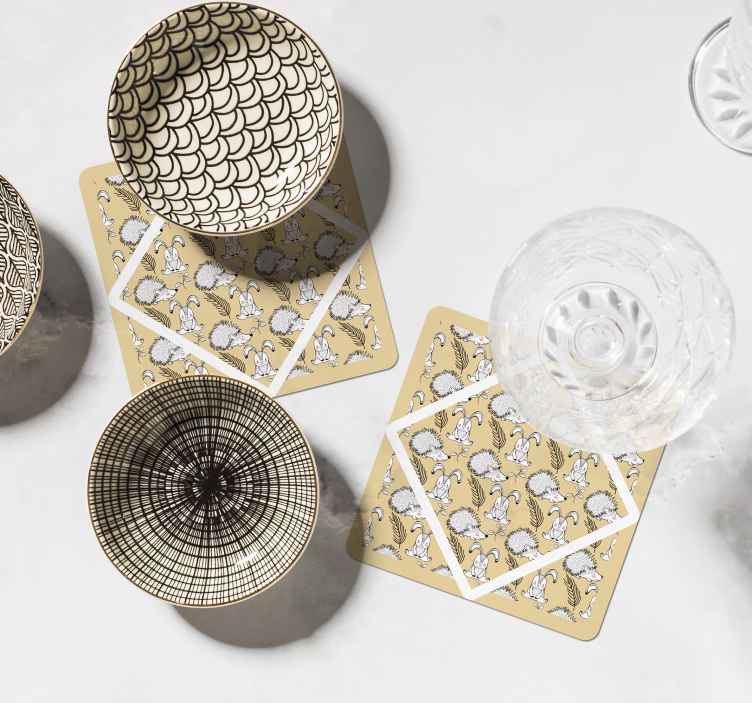 Transforma tu hogar con nuestros portavasos frikis con patrones de animales divertidos que presentan adorables dibujos de puercoespines, conejos y erizos. Este diseño juguetón y lindo combina patrones repetitivos que celebran la naturaleza, brindando un toque fresco y alegre a cualquier espacio. Cada portavasos se convierte en una pieza única que no solo es funcional, sino también un deleite visual para tus invitados.