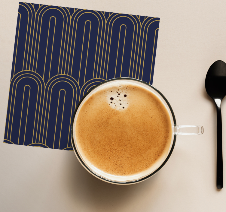 Descubre el fascinante portavasos patrón de líneas curvas, que presenta un diseño moderno y atractivo. Su patrón de ondas en azul marino con acentos dorados crea un efecto geométrico que definitivamente llamará la atención en cualquier mesa. Este estampado geométrico no solo es visualmente cautivador, sino que también aporta un toque de elegancia a tu espacio, convirtiéndolo en el complemento perfecto para tu decoración.