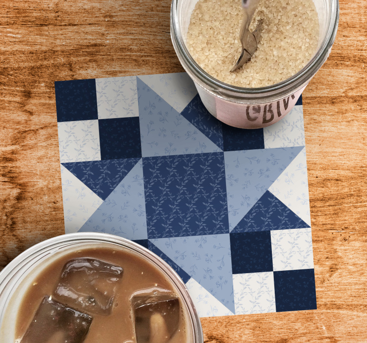 El portavasos patrón estrella floral elegante es una auténtica obra de arte que combina un diseño de estrella con un hermoso patrón floral. Este estampado único, elaborado con labor de retazos, presenta un fondo azul que resalta su estética geométrica y texturizada, creando un elemento decorativo que no solo es funcional, sino también visualmente atractivo.
