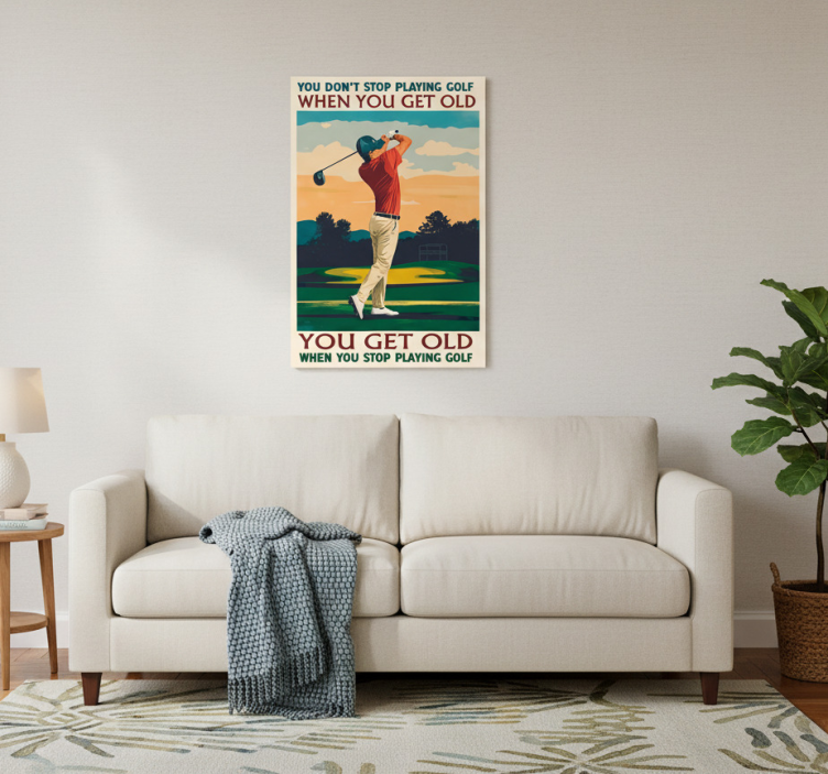 El Poster deporte jugando al golf es más que solo decoración; es una invitación a la pasión y la elegancia del golf. Su diseño inspirador motiva a quienes lo observan, creando un ambiente que celebra este deporte. Ideal para oficinas, salas de juego o cualquier rincón que necesite un toque de sofisticación y dinamismo, este poster transforma espacios comunes en lugares llenos de energía y estilo.