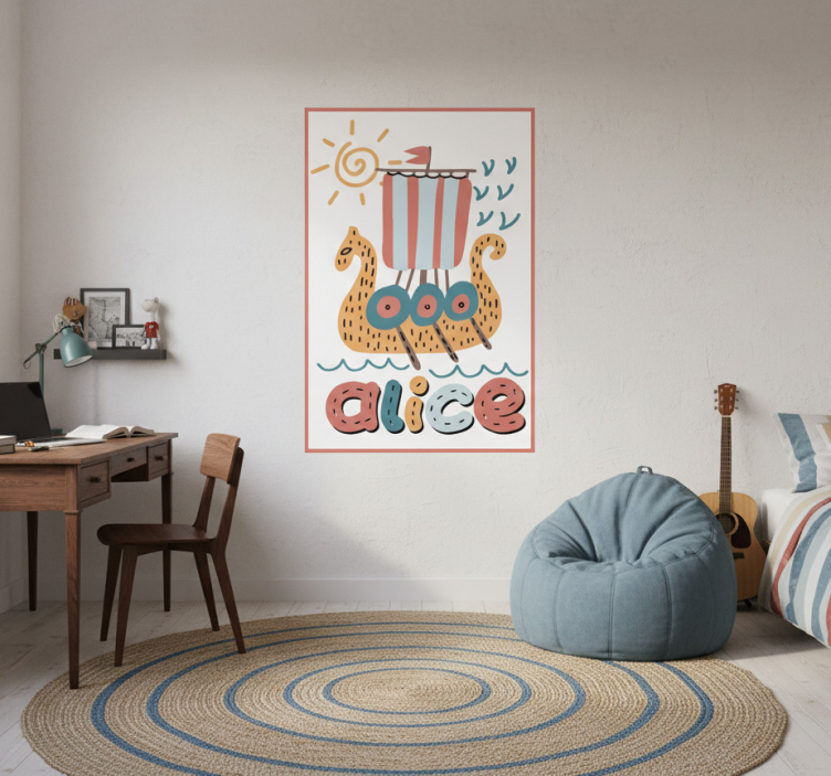 Poster habitación juvenil barco vikingo personalizado