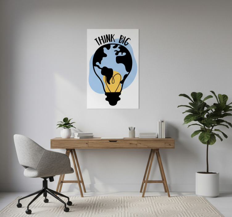 El Poster oficina mundo en forma de bombilla es una elección perfecta para quienes desean añadir un toque de inspiración a su entorno laboral. Este póster no solo embellece la pared, sino que también invita a la reflexión y la creatividad. Un espacio decorado con este diseño puede estimular la productividad y ofrecer una visión fresca cada día. ¡No hay mejor manera de motivarse que rodearse de arte que inspire!