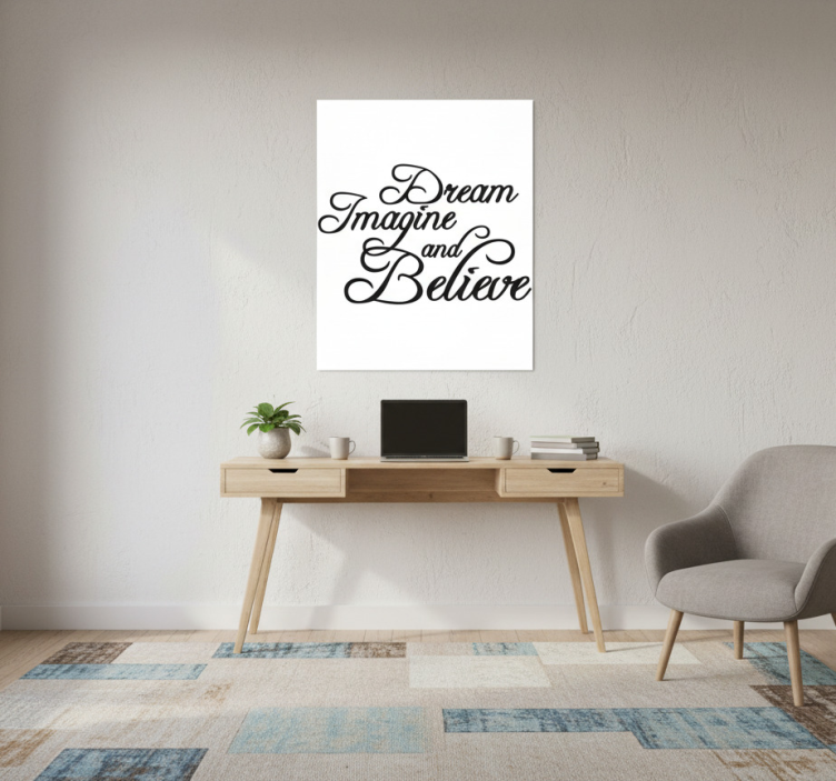 El Poster oficina sueña imagina y cree es la pieza ideal para infundir energía positiva en tu entorno laboral. Este cartel no solo decora, sino que también invita a soñar y a imaginar un futuro lleno de posibilidades. Al colgarlo en tu oficina, crearás un espacio que estimula la creatividad y la motivación, convirtiendo cada día en una oportunidad para crecer y aprender. ¡Haz que cada rincón de tu oficina respire inspiración!