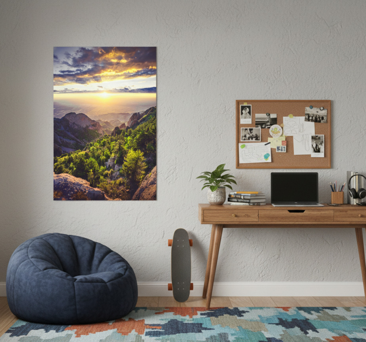 El poster salón amanecer en la montaña es una elección ideal para aquellos que buscan infundir su hogar con inspiración y alegría. Este magnífico diseño no solo embellece las paredes, sino que también evoca emociones de tranquilidad y conexión con la naturaleza. Imagina cada mañana despertando rodeado de esta escena impresionante, que te invita a soñar y a disfrutar de cada día con una perspectiva renovada. Es el detalle perfecto que complementa cualquier estilo de decoración y transforma tu salón en un espacio acogedor y vibrante.
