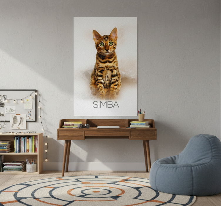 Transforma tu salón en un lugar lleno de personalidad y calidez con nuestro Poster salón retrato de mascota. Este elemento decorativo no solo embellece tus paredes, sino que también crea un ambiente acogedor y lleno de amor. Imagina a tus amigos y familiares admirando la representación artística de tu mascota, un recuerdo que perdura y que invita a compartir momentos entrañables. ¡Haz que cada rincón de tu hogar refleje la alegría que tu mascota trae a tu vida!