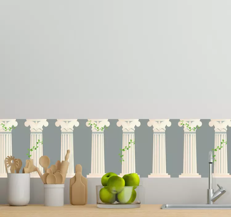 La cenefa adhesiva acento de columna clásica es una auténtica obra de arte que combina el estilo griego con la elegancia de las columnas y la sofisticación de un diseño de cocina contemporáneo. Este producto, que incluye una encantadora cenefa con un diseño de frontera y detalles que evocan la vid, es perfecto para añadir un toque distintivo a tu hogar, mejorando cualquier espacio interior con su presencia cautivadora.