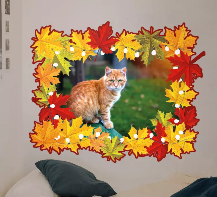 Descubre el encantador Marco adhesivo gato rodeado de hojas, una pieza decorativa que combina la belleza de la naturaleza con el toque adorable de un gato. Este diseño otoñal presenta un marco rodeado de hojas coloridas que resalta la imagen de un animal en un entorno natural, creando una atmósfera cálida y acogedora en cualquier espacio. ¡Es perfecto para aquellos que aman el otoño y quieren añadir un toque vistoso a su hogar!