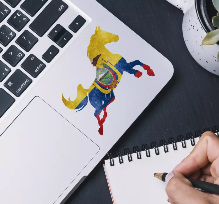 Marca la representación simbólica de Ecuador con esta decoración de vinilo en forma de caballo con la bandera de colores de Ecuador. Esta pegatina está diseñada para ser colocada en el pequeño espacio de escritura de su dispositivo, para que pueda lucir hermosa como un orgulloso símbolo de Ecuador. Sin embargo, también puede aplicar el diseño en cualquier otra superficie de su elección. La pegatina de la bandera de Ecuador está disponible en diferentes tamaños y también se puede personalizar a cualquier dimensión necesaria.
