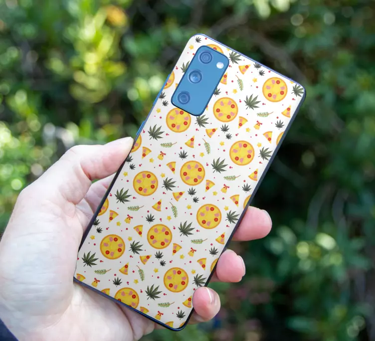 ¡Descubre nuestra pegatina samsung delicia de pizza queso! Este adhesivo cuenta con un diseño gráfico vibrante que fusiona elementos como pizza, marijuana, hojas y rodajas de pepperoni, creando un patrón vistoso y llamativo para personalizar tu teléfono inteligente. Su estampado alegre transformará tu dispositivo en una auténtica obra de arte, haciendo que cada vez que lo veas, te saque una sonrisa.