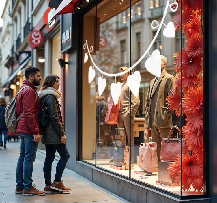 La Pegatina San Valentín corazones de semicírculo es la elección ideal para transformar cualquier entorno en un lugar lleno de amor y alegría. Su diseño vibrante y moderno no solo embellece, sino que también crea un ambiente acogedor que invita a los clientes a entrar. ¡Imagina la sonrisa en los rostros de quienes pasan por tu escaparate! Esta pegatina es más que un simple adorno; es una declaración de afecto que resalta el espíritu de San Valentín y anima a todos a celebrar el amor.