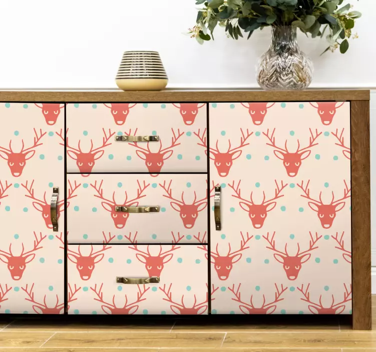 Descubre el encantador Vinilo animal de granja criaturas de cuernos rojos, una pieza única que transforma cualquier espacio en un refugio acogedor y festivo. Con un patrón de renos y ciervos, este estampado evoca la magia de la Navidad, mientras que las cabezas de estos animales con su impresionante cornamenta aportan un toque de naturaleza a tus muebles. Este diseño es ideal para quienes buscan un estilo auténtico y alegre.