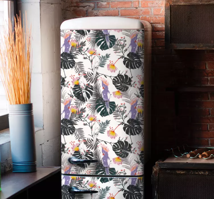 Transforma tu espacio con el Vinilo animal de granja estampado floral tropical, un diseño vibrante que evoca la naturaleza en cada rincón. Su impresionante patrón presenta hojas exuberantes y coloridos loros y cacatúas, creando un ambiente tropical y fresco. Ideal para adornar un refrigerador, nevera, frigorífico o heladera, este vinilo es una celebración del verdor y la naturaleza que llenará tus días de alegría y color.