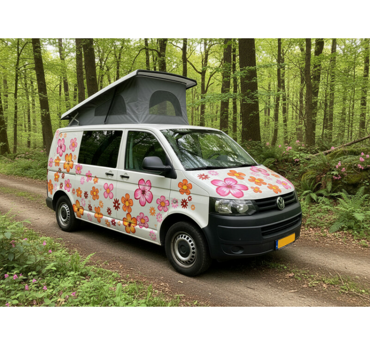 Vinilo autocaravana flores felices coloridas
