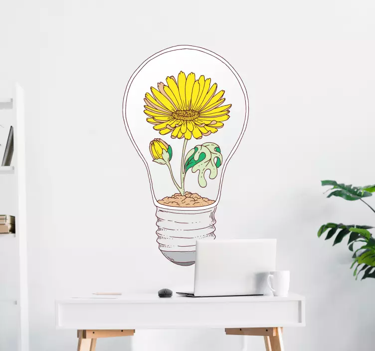 El vinilo bombilla que florece es la opción perfecta para quienes buscan dar un nuevo aire a sus ambientes. Este diseño no solo decora, sino que también inspira. Al incorporar un elemento natural como un girasol, transforma cualquier habitación en un refugio lleno de luz y optimismo. Ideal para salones, oficinas o habitaciones infantiles, este vinilo no solo embellece, también evoca una sensación de crecimiento y renovación. ¡Haz que tus paredes cuenten una historia de vida y color!