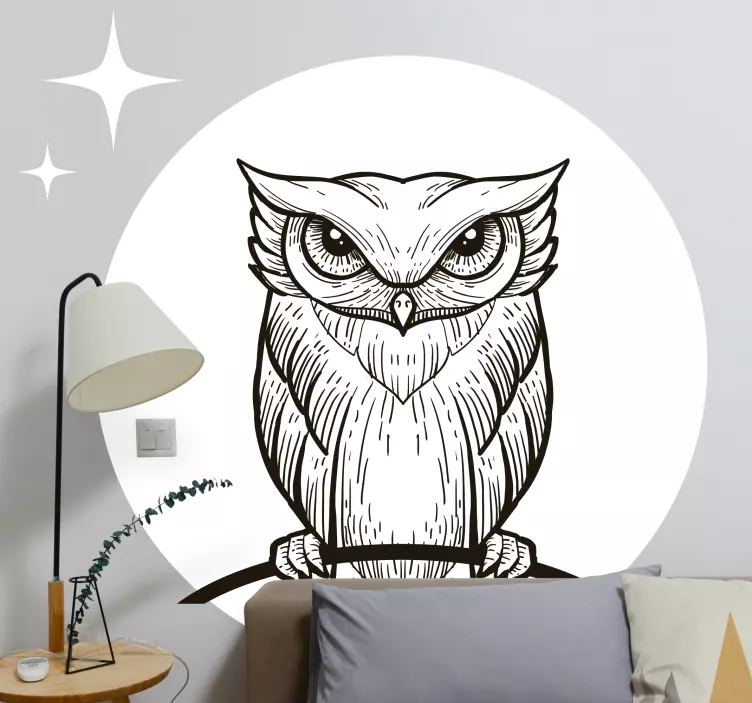 Descubre la belleza del Vinilo cabecero búho sabio intrincado, una ilustración circular que captura la esencia de la naturaleza con un búho majestuoso rodeado de estrellas. Este diseño detallado en blanco y negro aporta un aire de misterio y sofisticación a cualquier espacio, convirtiéndose en el foco de atención que siempre has deseado.