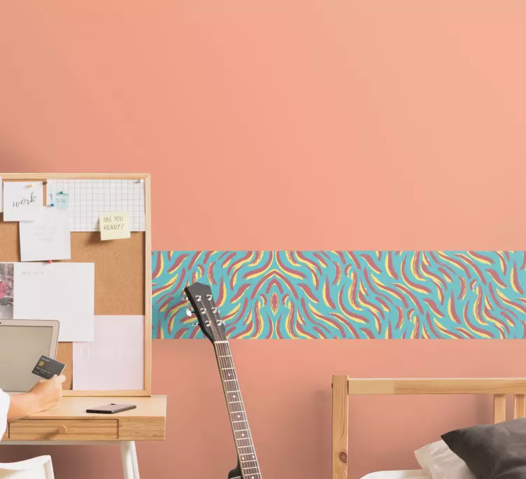 El vinilo curvas abstractas vibrantes es una obra de arte moderna que transforma cualquier espacio. Con su cenefa elegante, frontera definida y rayas fluidas, este patrón destaca por su estampado abstracto lleno de ondas dinámicas. Su diseño vistoso y cautivador se convierte en el centro de atención, aportando un toque de frescura y creatividad a tus paredes.