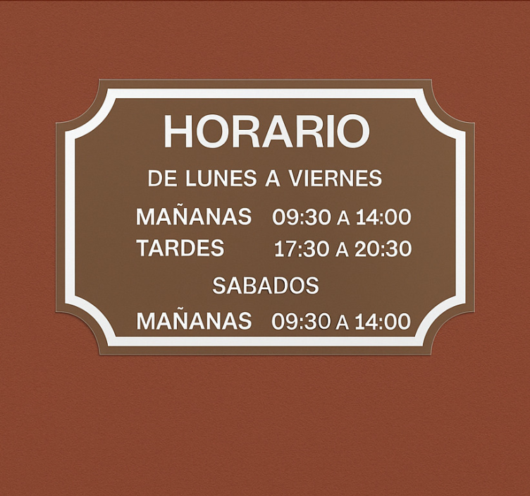 Referencia: A46365Descubre nuestro Vinilo escaparate horario de apertura personalizado, un producto que combina funcionalidad y estética a la perfección. Con un acabado de satinado que evita reflejos molestos y resalta la intensidad de sus colores, este vinilo es ideal para mantener tu escaparate atractivo y visible. Su diseño permite que se adapte a cualquier superficie plana, brindando una presentación elegante y profesional que atraerá a tus clientes.