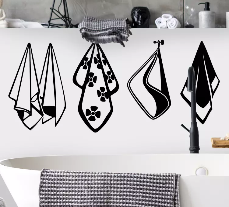 Descubre la belleza y elegancia del vinilo expositor elegante para toallas, un diseño que combina siluetas de toallas y elementos de baño, perfecto para realzar la decoración de tus espacios. Este producto es ideal para quienes buscan una opción que complemente su diseño de interiores con un toque de sofisticación y estilo.