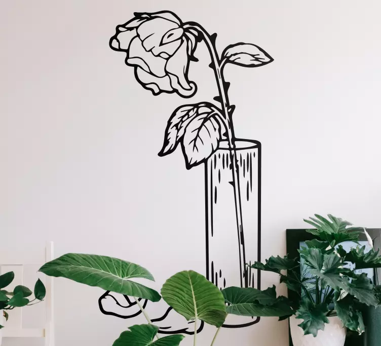 Descubre la belleza de nuestro vinilo flores composición de rosas elegantes, un diseño que evoca la frescura y la delicadeza de un jarrón lleno de rosas secas. Este vinilo, que imita el vidrio, presenta un dibujo floral minimalista perfecto para embellecer cualquier espacio interior. ¡Transforma tu hogar con este toque elegante!