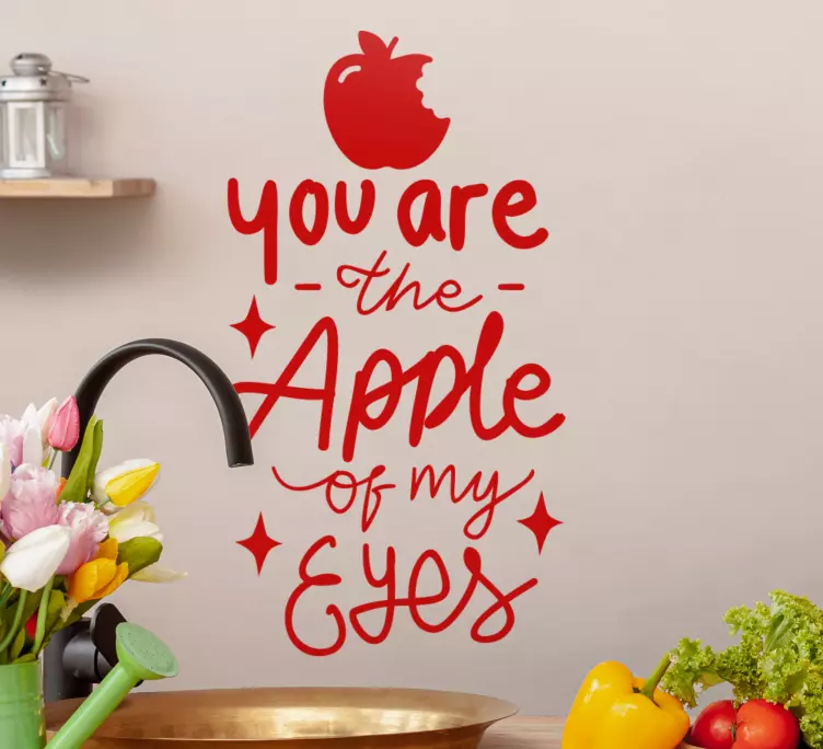 Referencia: A49160Una cita juguetona que enfatiza el afecto, con una vibrante ilustración de una manzana. El texto expresa creativamente el cariño, convirtiéndolo en una encantadora adición a la decoración de la cocina. Este diseño es adecuado para diversas necesidades personalizables, añadiendo un toque personal a tu espacio.