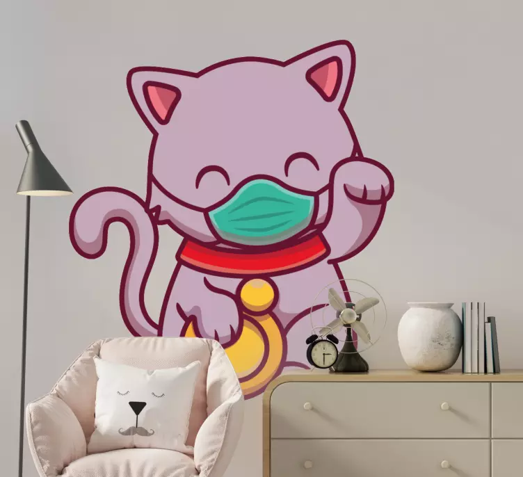 Vinilo gato feliz con mascarilla