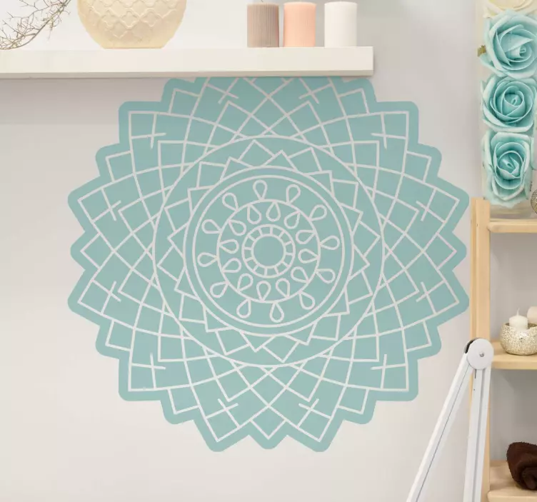 El vinilo geométrico elemento geométrico intrincado cautiva con su diseño gráfico que mezcla mandalas, elementos étnicos y ornamentales. Su simetría y estética moderna lo convierten en una pieza decorativa única que atraerá todas las miradas. Cada detalle en este vinilo geométrico es un homenaje a la belleza del diseño geométrico, perfecto para transformar cualquier espacio en un refugio de arte y estilo.