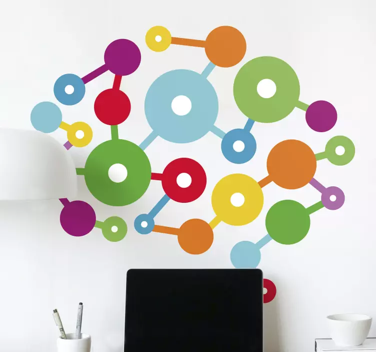 Referencia: A51213Este diseño vibrante presenta una serie de formas circulares interconectadas por líneas, creando una visual juguetona y dinámica. El uso de varios colores añade un toque animado, haciéndolo adecuado para espacios contemporáneos, promoviendo la creatividad y la inspiración en cualquier entorno.