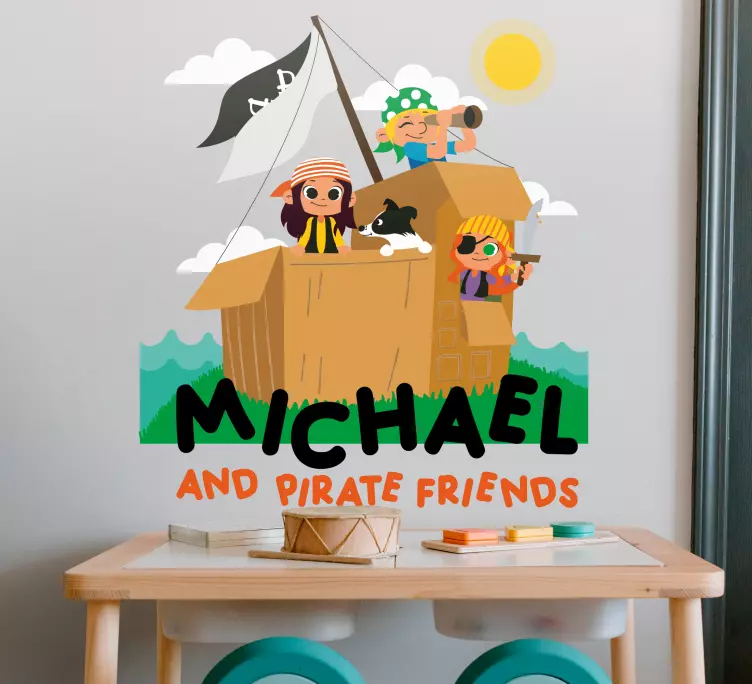 ¡Descubre la magia de la infancia con nuestro Vinilo infantil escena de aventura pirata! Este encantador diseño presenta a un grupo de niños aventureros en un barco pirata, listos para vivir emocionantes aventuras junto a sus amigos. Con un estilo de dibujos animados, cada personaje cobra vida, convirtiendo la habitación de tus pequeños en un mundo de piratas juguetones y personalizados, donde el nombre de tu hijo puede estar presente para hacerlo aún más especial.