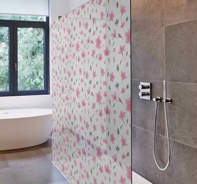 Transforma tu espacio con el Vinilo mampara ducha generación elemento botánico, un diseño que evoca la belleza de la naturaleza a través de acuarelas en tonos de rosa y rosado. Este patrón floral cautiva con su estampado vibrante, perfecto para dar vida a tu ducha. Las flores que lo componen crean un ambiente relajante y fresco que te transportará a un jardín en plena primavera.