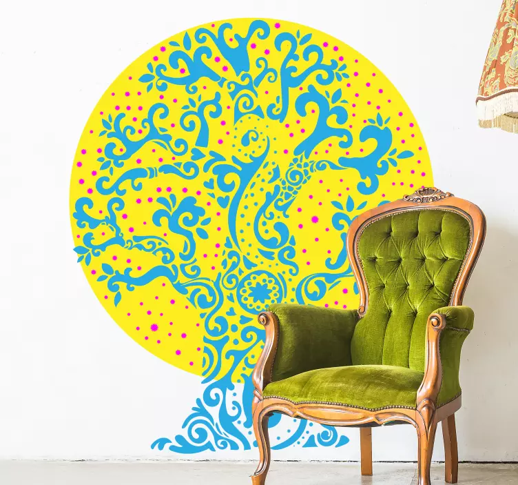 Descubre la belleza de la naturaleza con nuestro Vinilo naturaleza Árbol ornamental colorido, un diseño gráfico que evoca la vida a través de su representación de un árbol rodeado de círculos y topos. Esta obra artística se caracteriza por sus formas orgánicas y vistosas que aportan un toque fresco y alegre a cualquier espacio, convirtiendo tus lugares en verdaderos refugios de naturaleza.
