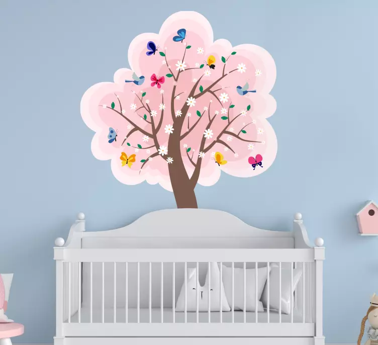 Descubre la belleza de la naturaleza con nuestro Vinilo naturaleza escena de árbol en flor, que presenta un árbol espléndido rodeado de flores y mariposas en un diseño vistoso y vibrante. Esta ilustración captura la esencia de la primavera con sus colores rosados y rosa, convirtiéndose en una pieza perfecta para alegrar cualquier espacio y traer la frescura de la naturaleza a tu hogar.