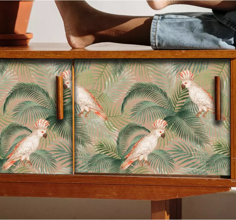 Descubre la belleza de la naturaleza en tu hogar con nuestro vinilo naturaleza loros y palmas tropicales. Este diseño vibrante presenta hojas exuberantes, coloridos loros, plumas en movimiento y un follaje que evoca la frescura de un mueble tropical. Con cada mirada, sentirás que te transportas a un paraíso natural, lleno de vida y color, ideal para cualquier espacio que desees transformar.
