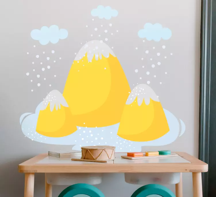 Descubre la belleza de la naturaleza con nuestro Vinilo naturaleza picos amarillos de montaña. Este diseño caprichoso presenta montañas majestuosamente ilustradas en un vibrante tono amarillo, rodeadas de suaves nubes y un toque de nieve, creando una imagen que evoca la serenidad y la grandeza de la naturaleza. Ideal para quienes buscan un pedazo de paisaje en sus paredes, este vinilo no solo decora, sino que transforma cualquier espacio en un refugio de calma y alegría.