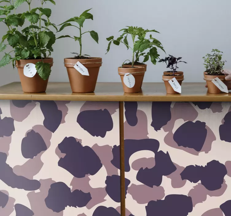 Descubre el vinilo ornamental estampado de leopardo, una pieza decorativa que irradia un elegante aire moderno y abstracto. Su diseño combina tonos de púrpura, lila y morado en un patrón de camuflaje que evoca la belleza de la naturaleza. Con una huella animal que aporta un toque salvaje y distintivo a tus muebles, este vinilo no solo es atractivo, sino que también transforma cualquier espacio en un refugio estilizado y acogedor.