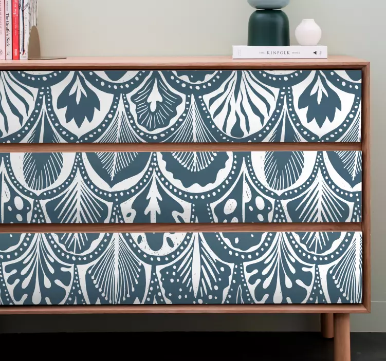 Descubre la belleza del vinilo ornamental estilo de estampado floral, un diseño que combina la elegancia de las escamas de pescado con un patrón floral en tonos azul. Este estampado es perfecto para realzar cualquier mueble o espacio, proporcionando una textura ornamental que cautivará a todos los que lo vean. ¡Transforma tu hogar con este toque artístico!