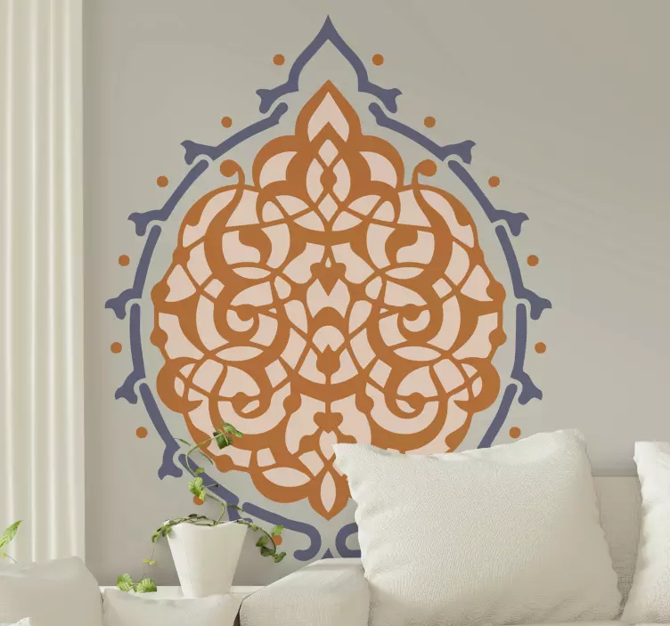 Transforma tu espacio con nuestro vinilo ornamental patrón de pared ornamental, un diseño gráfico que fusiona lo ornamental y lo geométrico en un estampado intrincado que evoca la rica cultura árabe. Este elemento decorativo clásico no solo embellece, sino que también aporta un toque cultural a cualquier habitación, convirtiéndola en un lugar único y acogedor.